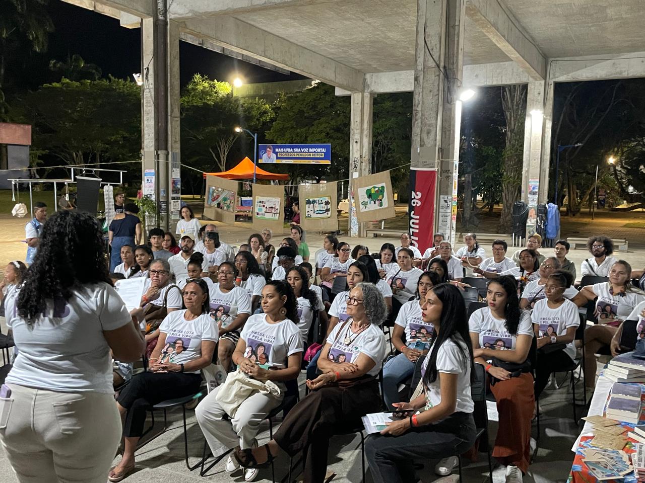 Em sua fala, a presidenta ressalta a importância da APUB no fortalecimento de atividades dos movimentos sociais e afirmou a posição cidadã do sindicato: “Não existe universidade desvinculada das grandes questões do nosso tempo, e uma das grandes questões do nosso tempo é a crise ambiental. Que de várias maneiras tem sido enfrentada pela universidade e por vocês nesse movimento, avaliou, referindo-se ao Movimento dos Atingidos por Barragens (MAB), com quem a atividade foi promovida.