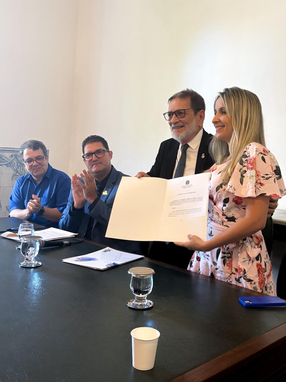 A APUB participou na manhã do dia 19 (quinta) da posse dos novos diretores da Escola de Medicina Veterinária e Zootecnia (EMEVZ), os professores Rodrigo Bittencourt e a professora Nádia Rossi. Em solenidade conduzida pelo Reitor Paulo Miguez, o evento contou com a presença do professor e ex-diretor do instituto de EMEVZ Professor Vagner Maximino Leite, da professora e diretora financeira da APUB, Auristela Teodoro, a professora e vice-presidenta da APUB Barbara Coêlho e a presidenta da APUB, Raquel Nery.