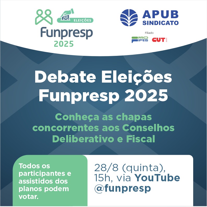 O objetivo é oferecer aos participantes e assistidos dos planos de benefícios a oportunidade de conhecer melhor os projetos em disputa e, assim, contribuir para uma escolha mais consciente no processo de votação. A Funpresp, responsável pela complementação da aposentadoria de servidores federais, ocupa papel central na vida funcional de professores e professoras das universidades públicas, público representado pela APUB Sindicato, que incentiva a categoria a acompanhar e participar do processo.
