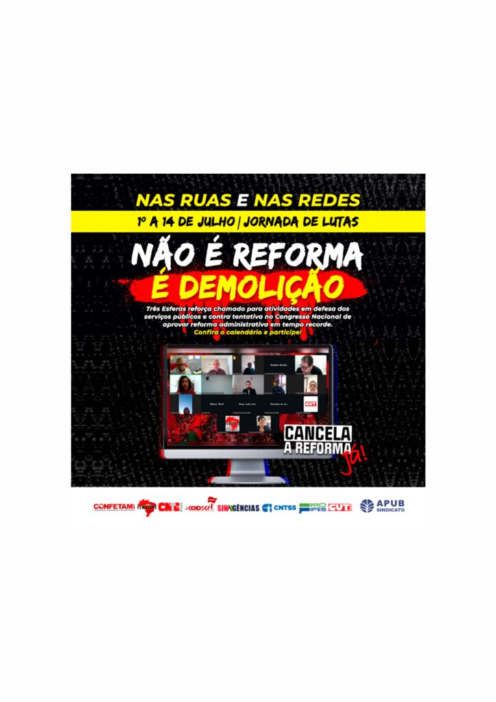 De 1º a 14 de julho atividades virtuais e presenciais reforçam mobilização e unidade em defesa dos serviços públicos, contra tentativa no Congresso Nacional de aprovar reforma administrativa sem o devido debate. Confira o calendário e participe!