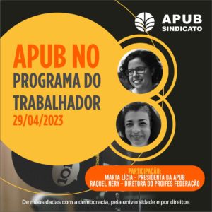 A APUB Sindicato participou da edição do Programa do Trabalhador, da rádio Metrópole, no sábado, 29 de abril de 2023, apresentado por Raniere Alves. As
