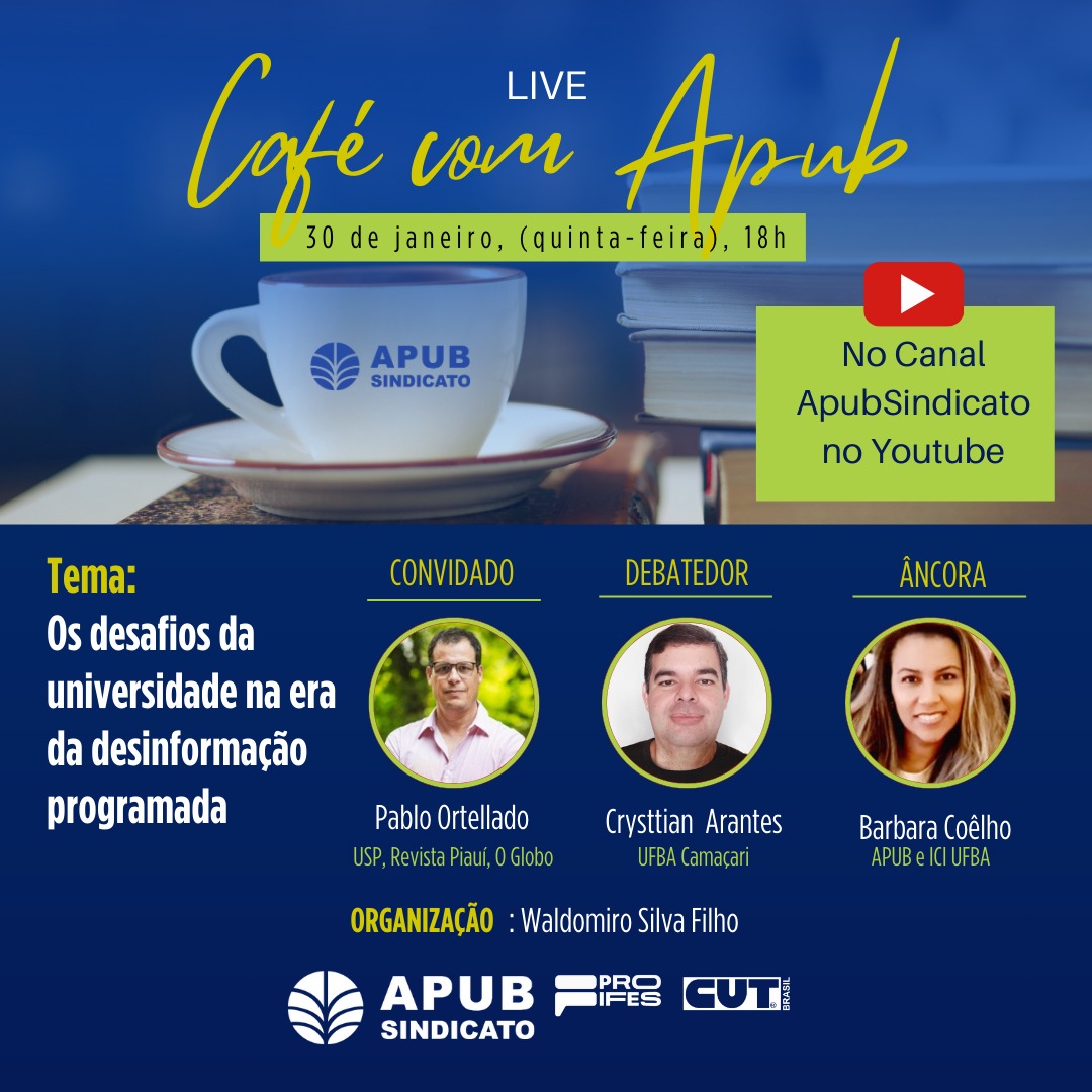 Acontece na próxima quinta (30), às 18h, mais uma edição do Café com Apub. Organizado por Waldomiro Silva Filho, o encontro tem como tema “Os