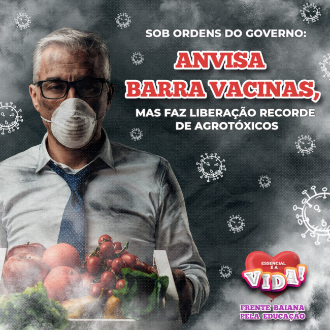 ☠️ Mas a prioridade de quem comanda a Anvisa atualmente não parecer ser exatamente com a saúde da população, já que em meio à maior pandemia da história, eles continuaram direcionando esforços para liberar quantidades recordes de agrotóxicos em 2020: foram 493 novas autorizações (muitos desses produtos já foram banidos na Europa e nos Estados Unidos).
